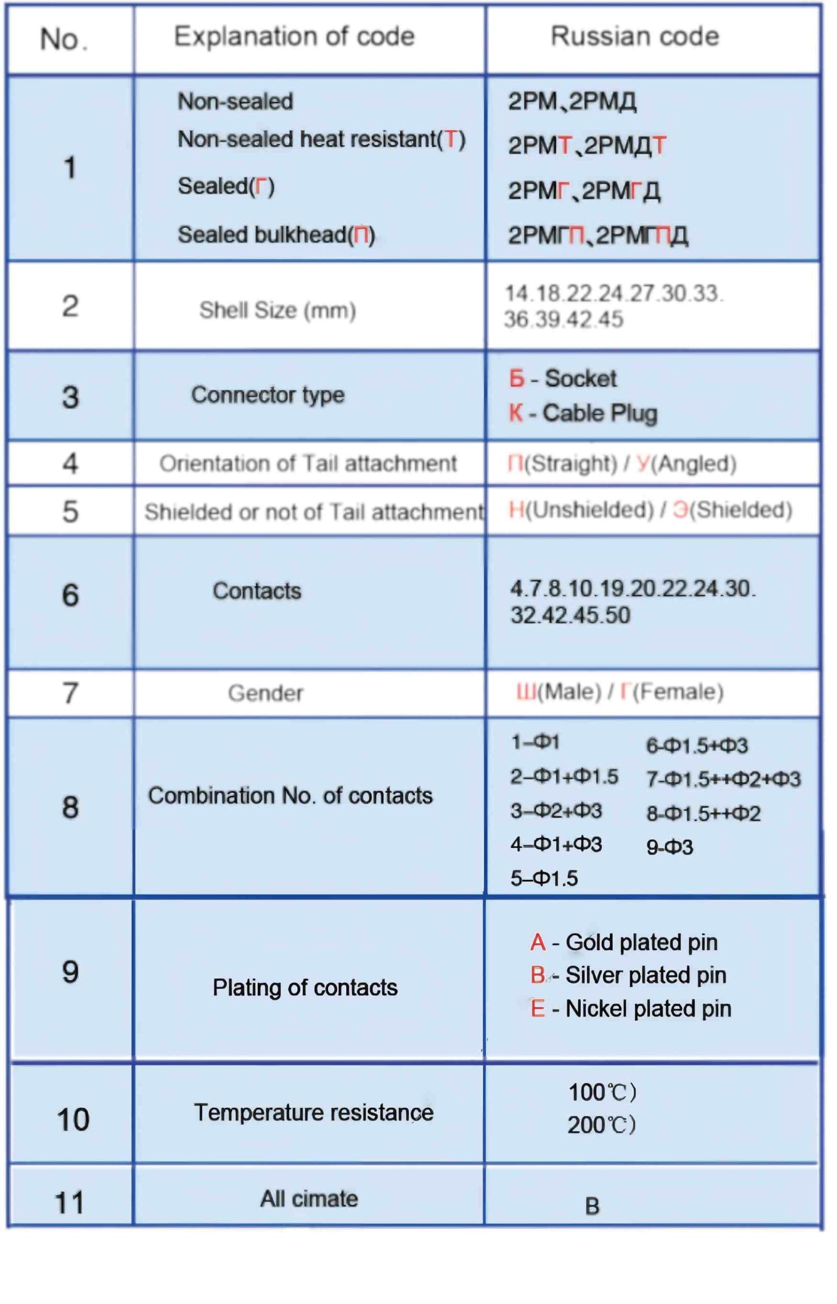 2PM series circular electrical connectors mainly adopt Russian connector technology.It is widely used for electrical connection and signal transmission between electrical equipment in railway system,trams and trolley bus etc.Its unique structure can make up for the shortcomings of many other similar connectors,making it more convenient and scientific to use.The cable plug and panel socket are threaded connection.The panel socket also has a glass sintered sealed socket (M) and a glass sintered sealed bulkhead socket (C),which can simultaneously meet the user equirements inspecial environments such as vacuum,sealing,and high temperature.It can be matched and interchanged with original parts of Russian2PM(T) /2РМД(T) /2РМГ/2РМГД /2РМГП/2РМГПД series.