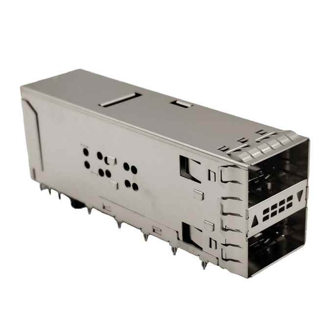 81-161-Y2121-1 – Double-layer QSFP28/28G fiber cage/crimp type 2*1/0.36MM pin/with double-sided light guide column