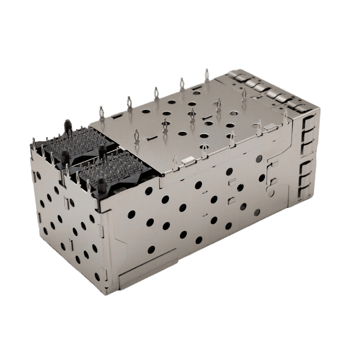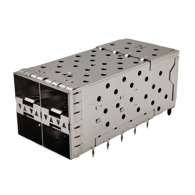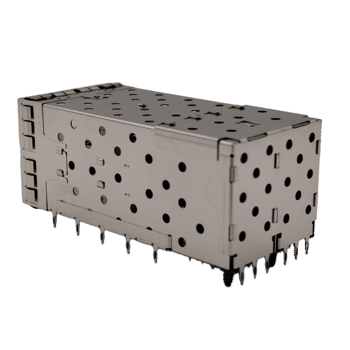 81-122-Y0013-1 – Double SFP+/10G fiber cage/crimp type 2*2/0.46MM pins/with four light guide columns