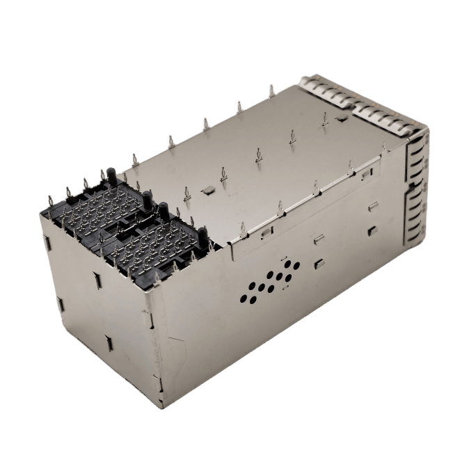 81-281-Y2201-1 – Double SFP28/28G fiber cage/crimp type 2*2/0.37MM pins/with four light guide columns
