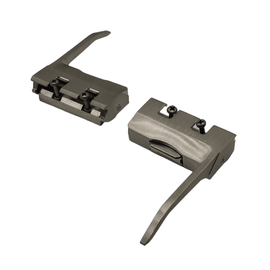 Handle, mounting fixture (handle to panel set screw, handle to beam set screw)
