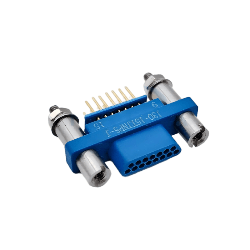 MIL-DTL-83513 miniature Dconnector is a female socket for electrical interconnection applications, meeting the stringent requirements of military and aerospace environments, it is a reliable connector, gold plated nickel plated contacts,500V voltage rating, 500 mating cycles, part number:J30-15TJNP5-J