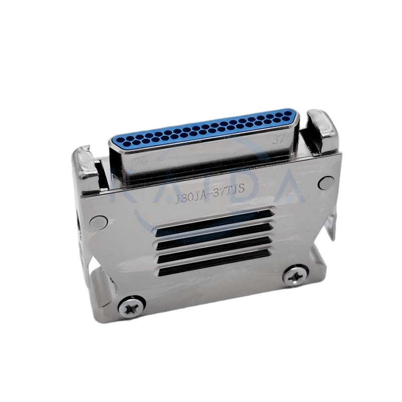 MIL-DTL-83513 miniature Dconnector is a female socket for electrical interconnection applications, meeting the stringent requirements of military and aerospace environments, it is a reliable connector, gold plated nickel plated contacts,500V voltage rating, 500 mating cycles, part number:J30JA-37TJS