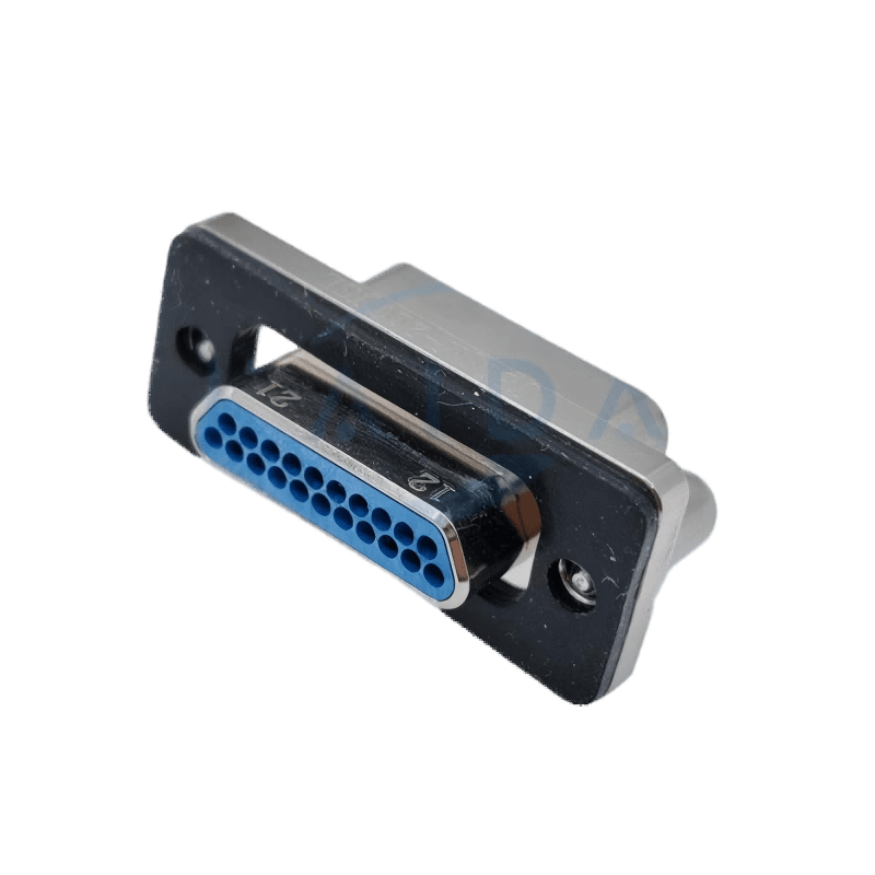 MIL-DTL-83513 miniature Dconnector is a female socket for electrical interconnection applications, meeting the stringent requirements of military and aerospace environments, it is a reliable connector, gold plated nickel plated contacts,500V voltage rating, 500 mating cycles, part number:J30JM-21TJSL