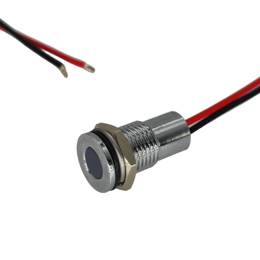 The range comprises of four different panel cut-out sizes (6mm, 8mm,12mm, 14mm, ) Three different bezel shapes, prominent, recessed and flush manufactured from high quality Brass and Both bezel materials are available plated in Bright Chrome, Black Chrome,Terminations can be supplied in 2.0/2.8mm Faston/solder lug, pins or 200mm long wire. IP67 sealing can be achieved as an option.