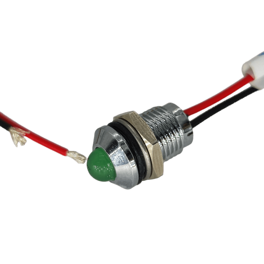 The LED indicators are available with integral resistors to permit direct connection to 6V, 12V, 24V, 28V, 110V and 220V. (Other voltages are available upon request).
