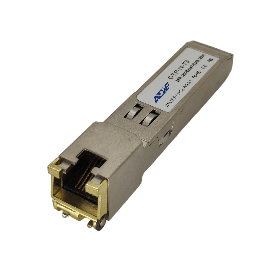 ADWE’s 1000BASE-T or 10/100/1000BASE-TAutonegotiation can be installed into optical SFP slots enabling an optical Ethernet port(1000Base-X) to be converted into a copperEthernet port (1000Base-T) either in the field orin production. RJ45 Transcevers are compatiblewith Gigabit Ethernet and 1000BASE-T standards.